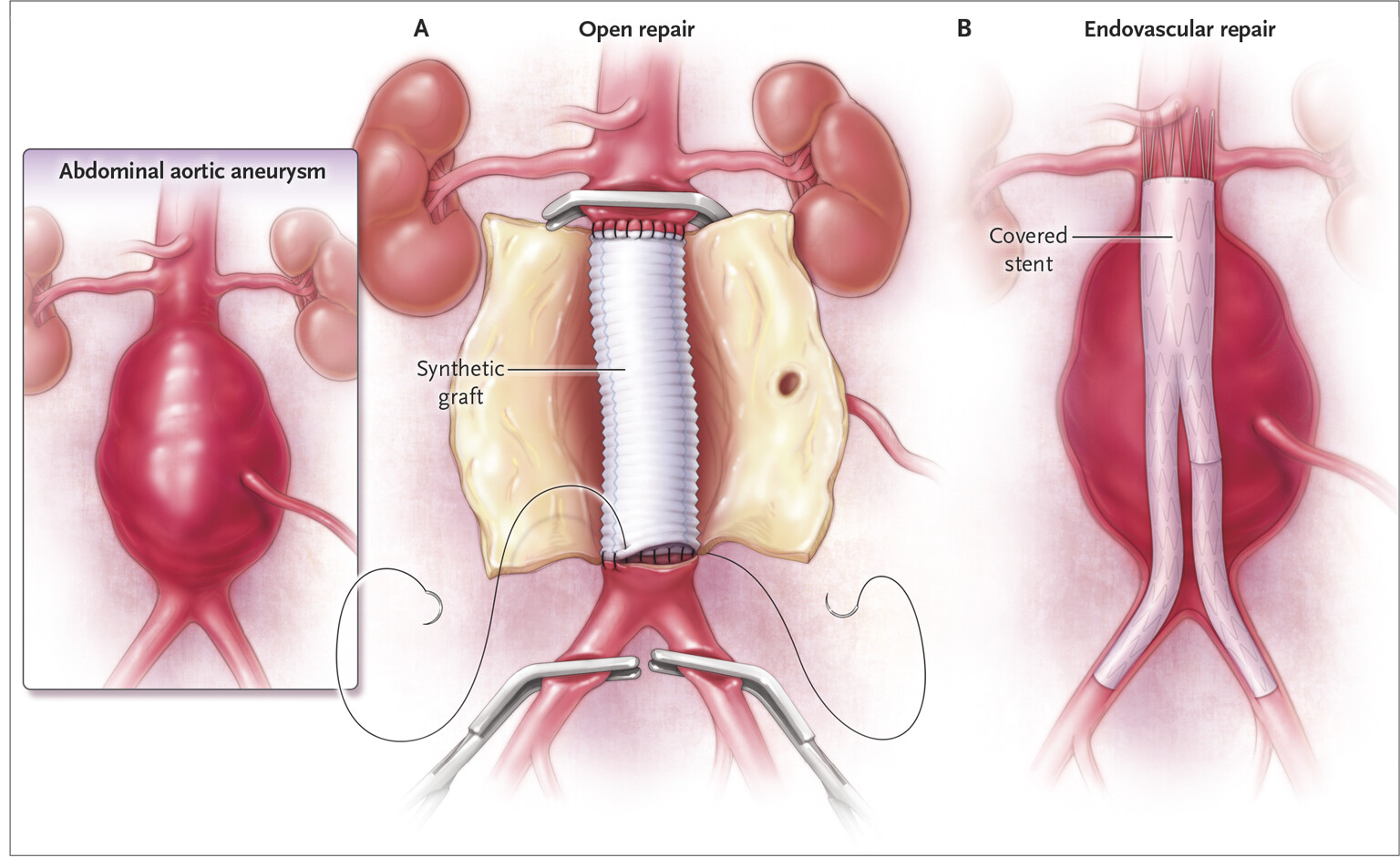 대동맥류가 일정 크기 이상으로 커졌거나 빠르게 성장하는 경우, 통증 등의 증상이 있는 경우에는 수술적 치료가 권장됩니다. 혈관내 스텐트 그라프트 삽입술은 다리 쪽 큰 혈관을 통해 기구를 삽입해 약해진 대동맥 부위를 안쪽에서 보강하는 방법입니다. 개복 수술에 비해 신체 부담이 적고 회복 기간이 짧은 편이어서 많은 환자에게 적용되고 있습니다. 다만 혈관 구조에 따라 이 방법이 적합하지 않은 경우도 있습니다. 그런 경우에는 개복 수술을 통해 손상된 대동맥 부위를 제거하고 인조혈관으로 대체하는 방법이 시행됩니다. 회복에는 시간이 필요하지만, 오랜 기간 검증된 치료 방법입니다.